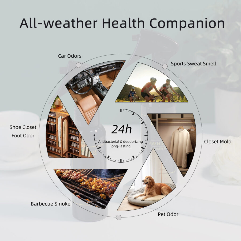 Instantly freshen, deodorize and disinfect your room, bed and clothing with just a few sprays!