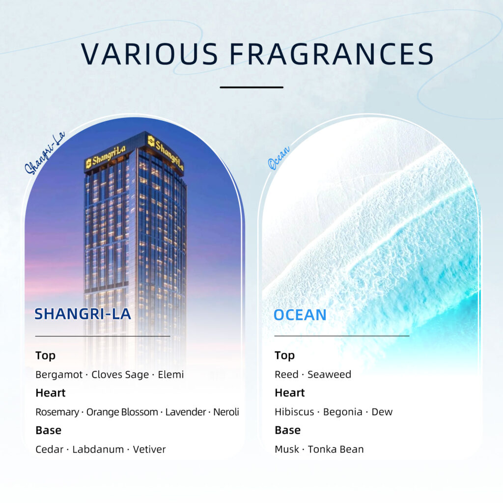 Scents: Lavender · Shangri-La · Bamboo · Ocean